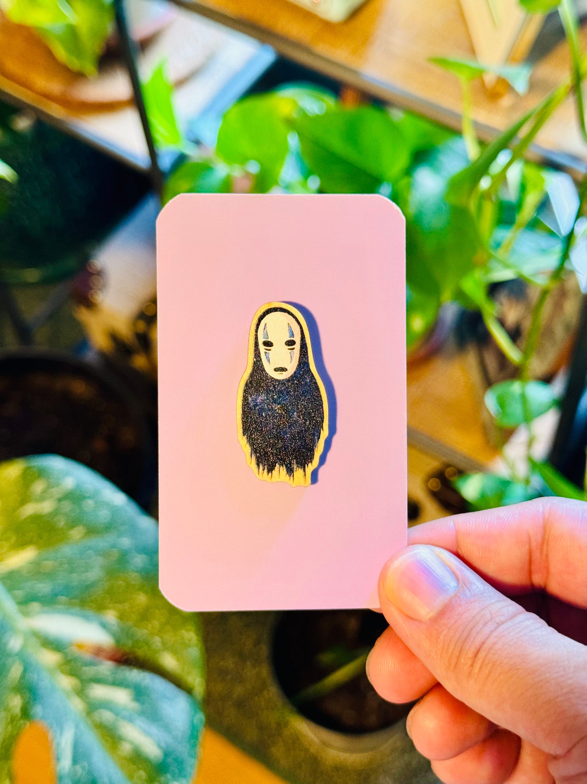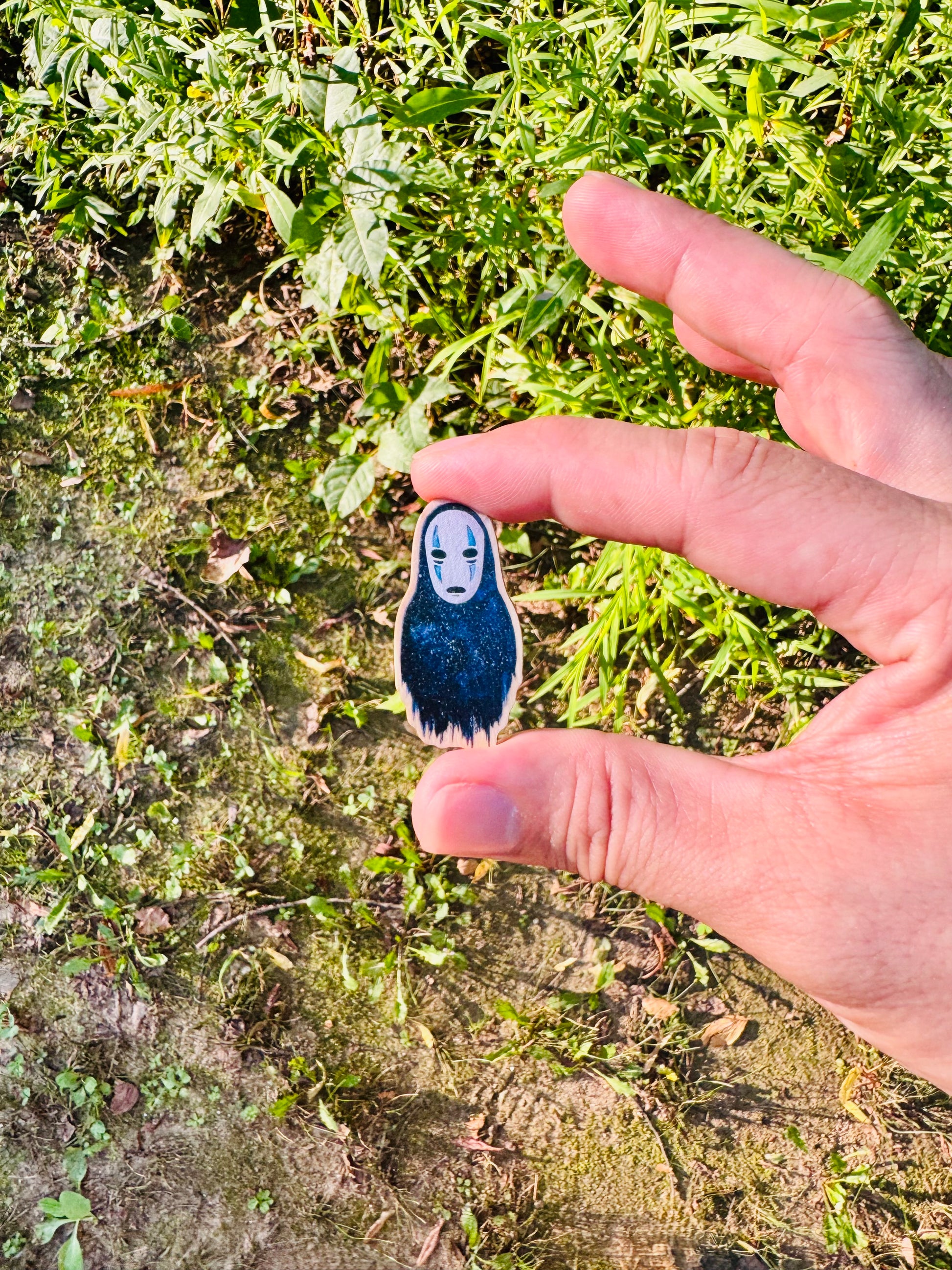 A 1.5 inch art pin made of synthetic basswood featuring a popular character from the Studio Ghibli universe. The perfect addition to your pin or fan collection, with a touch of cuteness and uniqueness.